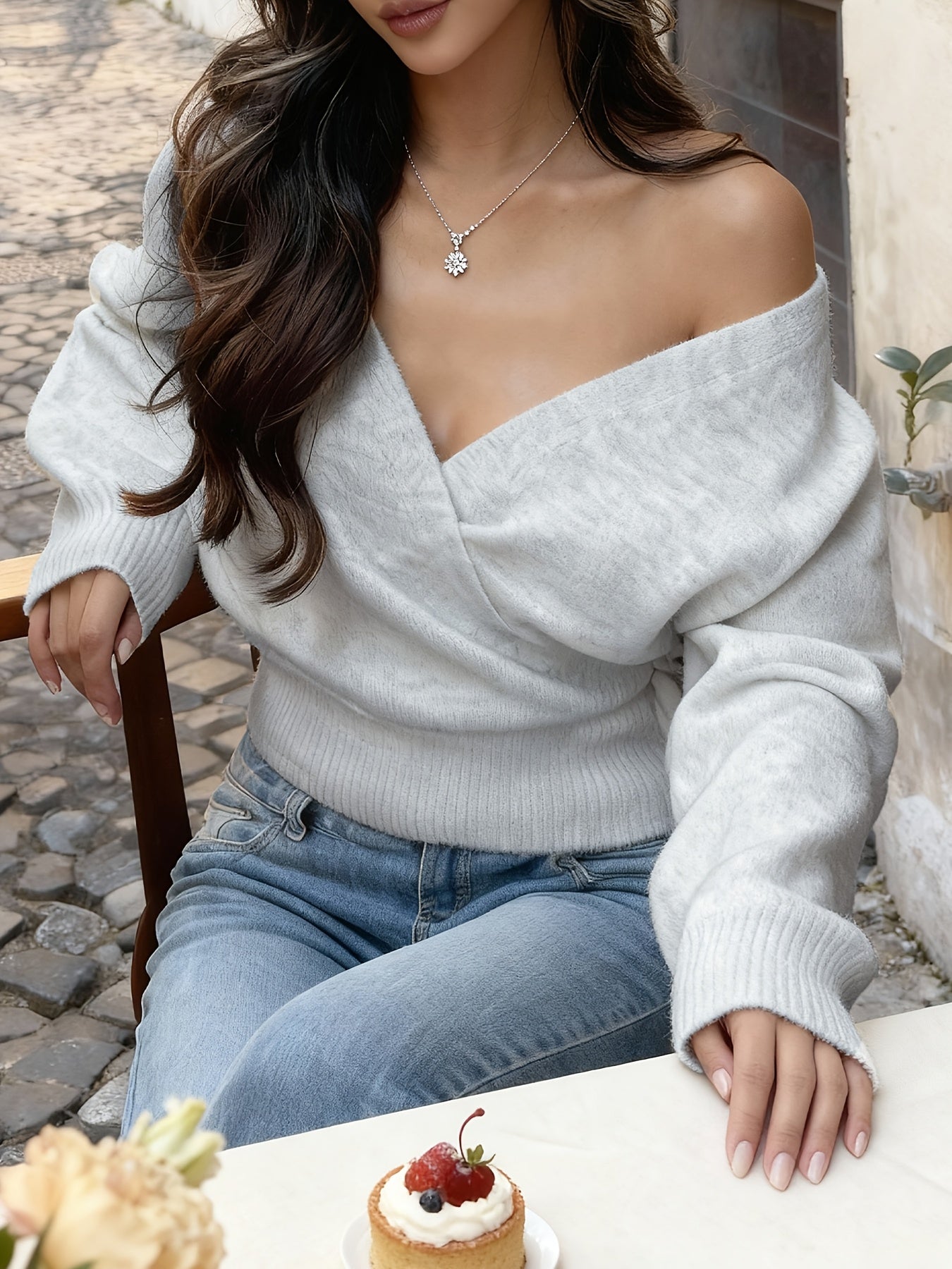 LAURA™ | Asymetryczny sweter z dekoltem V i krótkim fasonem